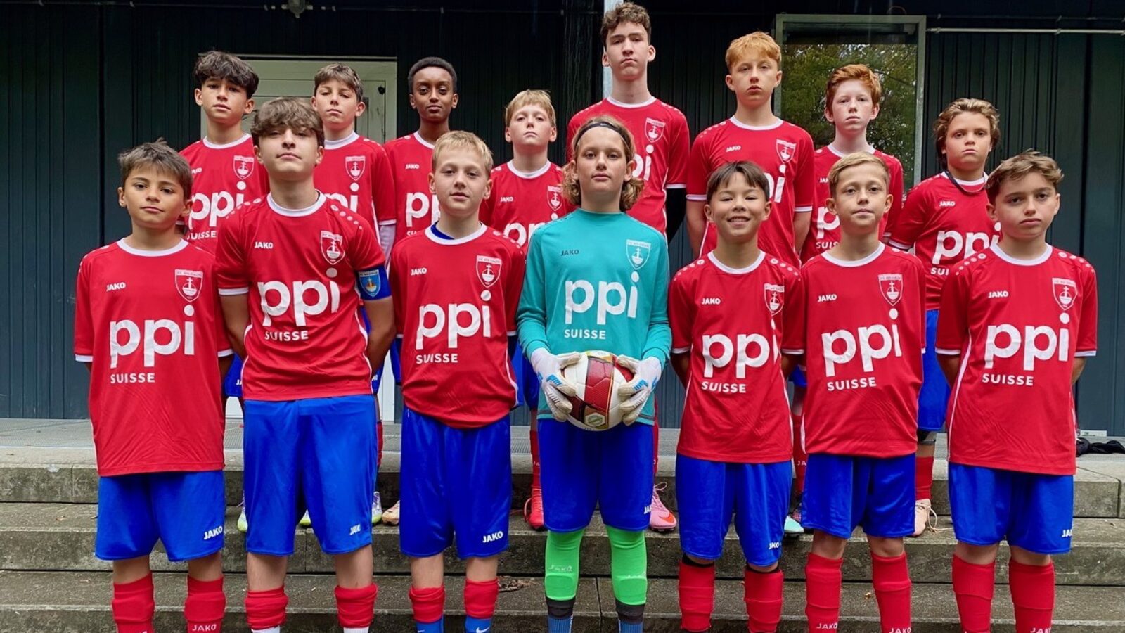 Trikotsponsor Carsten Miehling (1. von rechts) von PPI Schweiz mit unseren D1-Junioren.